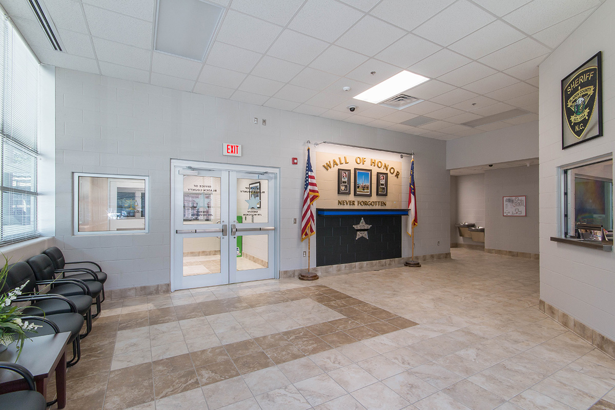 Bladen County Detention was the first CM at Risk project for Bladen County. The 67,000-sf compound is the combination of a 225 bed Detention Center, Law Enforcement Center, and Emergency 911 Call Center. The detention area includes intake and booking, detention dayrooms and cells, centralized control room, magistrate’s offices, kitchen, medical wing, and video visitation and video arraignment. The law enforcement area includes Sheriff’s offices, training rooms, and evidence storage. The 911 call center includes space for 6 call stations and associated equipment.
