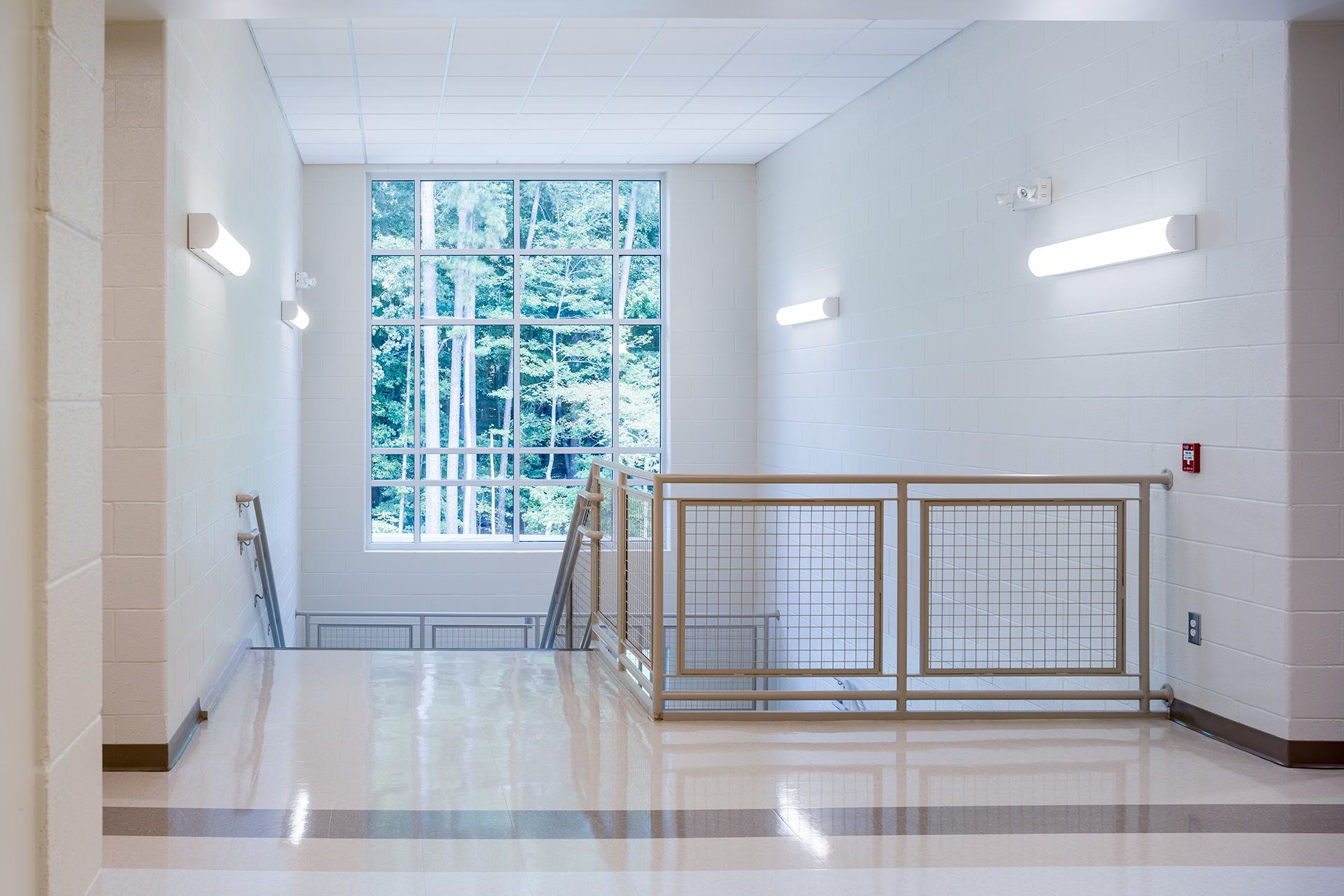 This project included the demolition of approximately 58,000 sf of an existing structure, the renovation of 16,761 sf of structure that remained, and provided 23,559 sf of additional space. The new construction took place east of the existing structure. The completed facility is now a two-story building that includes three classroom wings, an administration wing, a dining/kitchen wing, and a gymnasium with locker rooms.
