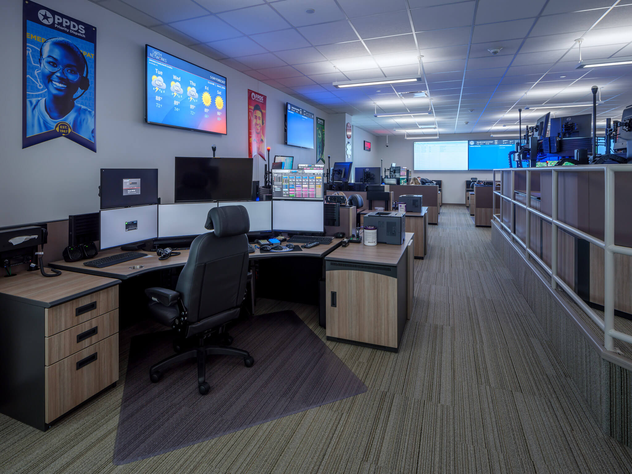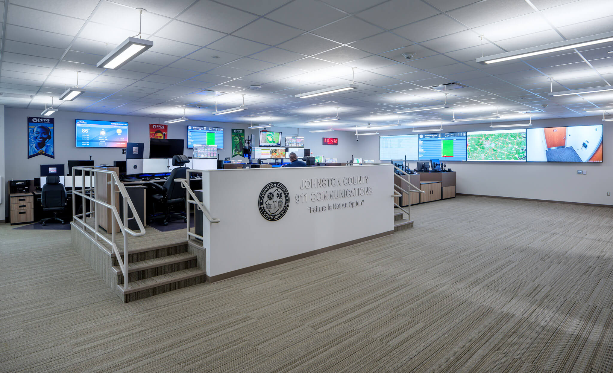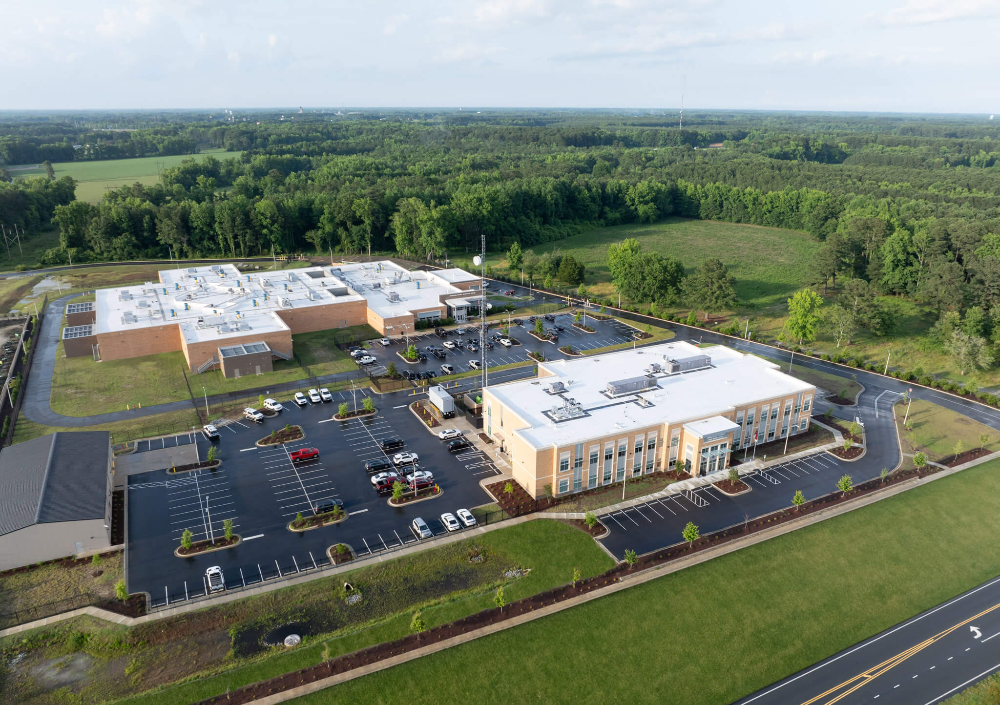 The Johnston County Public Safety Center is a 2-story 50,000 sf building in Smithfield, NC. The first floor consists of offices for the Sheriff’s Department, while the 2nd Floor consists of the county’s 911 Call Center, Emergency Operations Center (EOC), Fire Department and other Emergency Management offices. The property also includes a separate 8,000 sf Evidence Storage building with office spaces and storage space for the Sheriff’s department.
