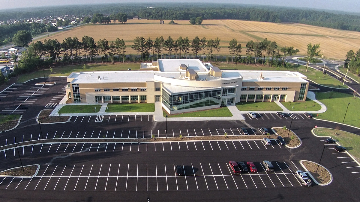 The new two story, 80,000sf building includes state-of-the-art equipment and instructional and classroom support. The facility will house offices, a multipurpose room, 75-seat lecture hall, support spaces, plumbing, mechanical and electrical systems. A new firing range and Forensic Crime Scene laboratory will support law enforcement training. Construction includes a two-story steel frame structure with slab-on-grade, metal stud and concrete masonry unit interior partition walls, brick and precast cavity wall exterior walls, and a membrane roof system over rigid insulation, metal deck and steel bar joist roof construction. Site work includes construction of a 400 space parking lot, sidewalks, and associated site work on a 7 acre site.
