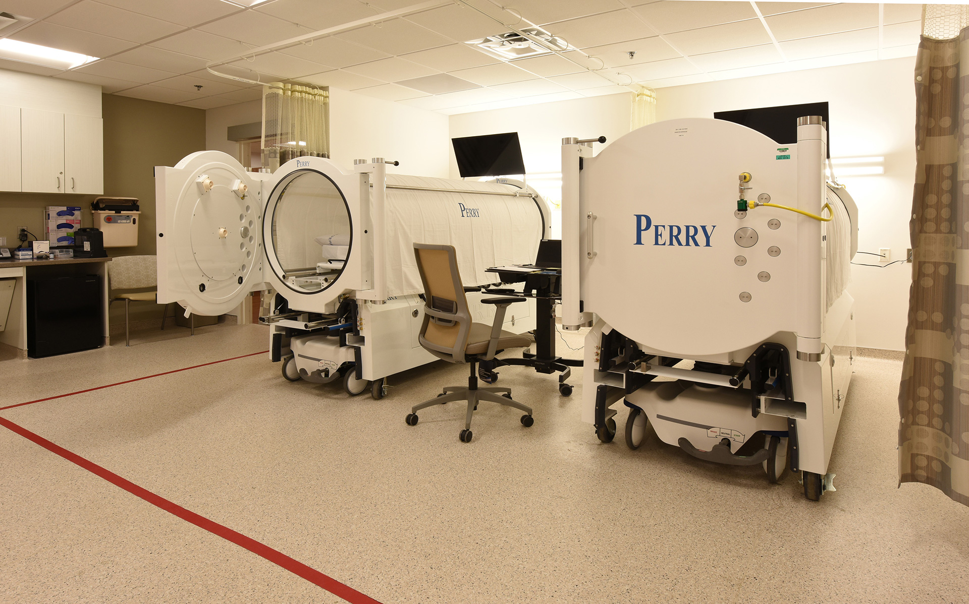This project consisted of the conversion of a 3,000 sf office building into a Class B Wound Care Clinic with hyperbaric chambers and associated patient and auxiliary rooms. Scope included under slab sanitary sewer lines, plumbing, acoustical ceiling, new split system air handler and associated VAV boxes, oxygen piping, electrical, flooring, fire sprinklers and fire alarm system. Facility maintenance consisted of demolition of the interior of the building, stucco, roofing, concrete work, site grading and landscaping. Design and installation of a screen wall around the oxygen tanks was also completed.