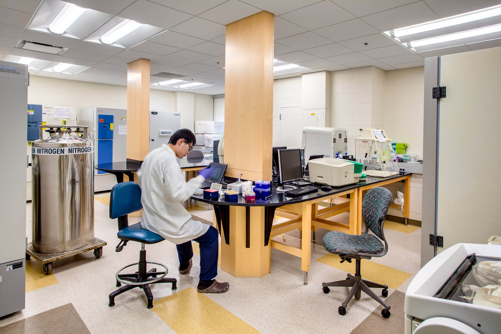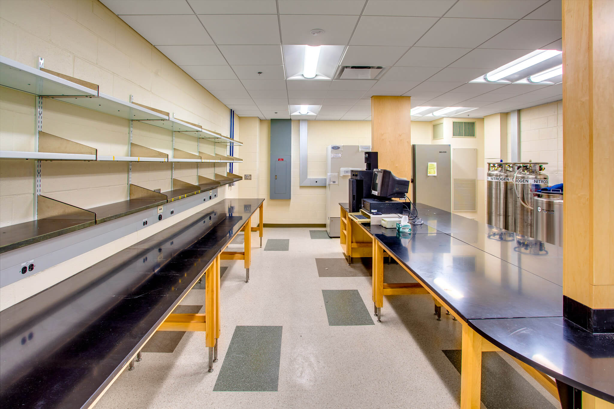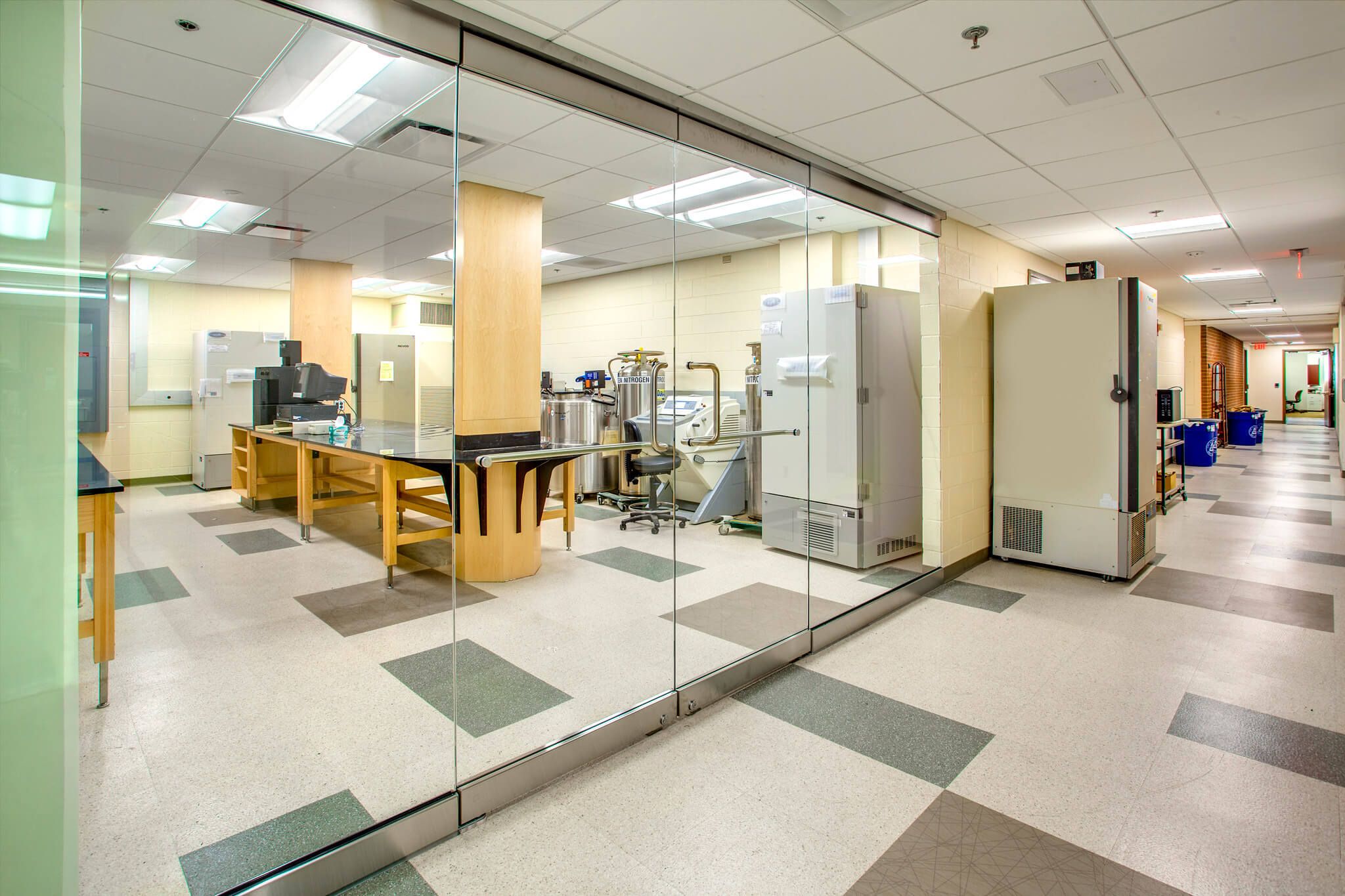 Common Equipment Rooms provide a central location for shared equipment such as freezers, centrifuges, etc. These rooms free underutilized space in labs and allow greater flexibility in redesign and renovation. Research teams can be regrouped for better collaboration and synergy.